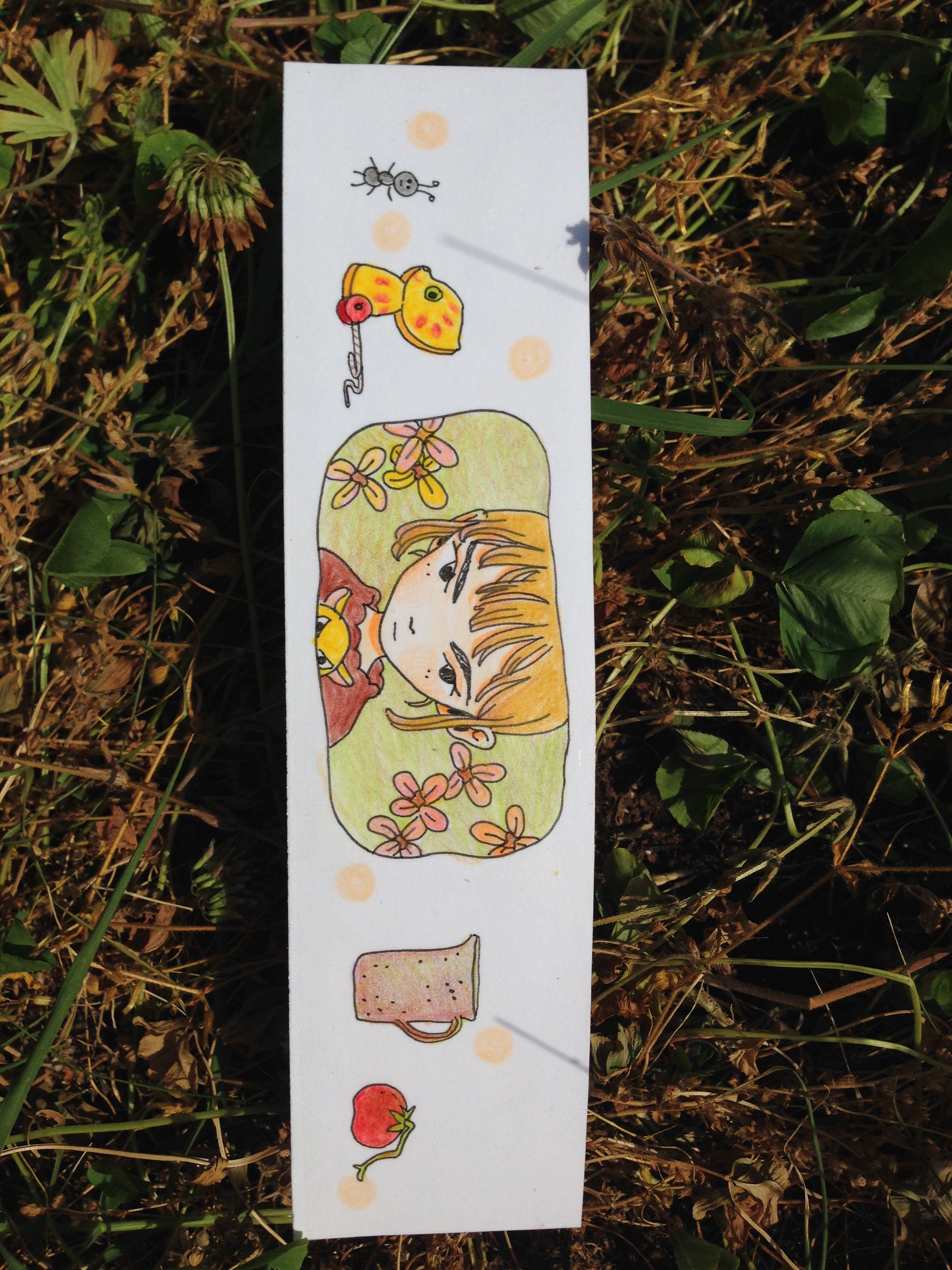 Bookmark drawn on bristol paper and then laminated with packaging tapes