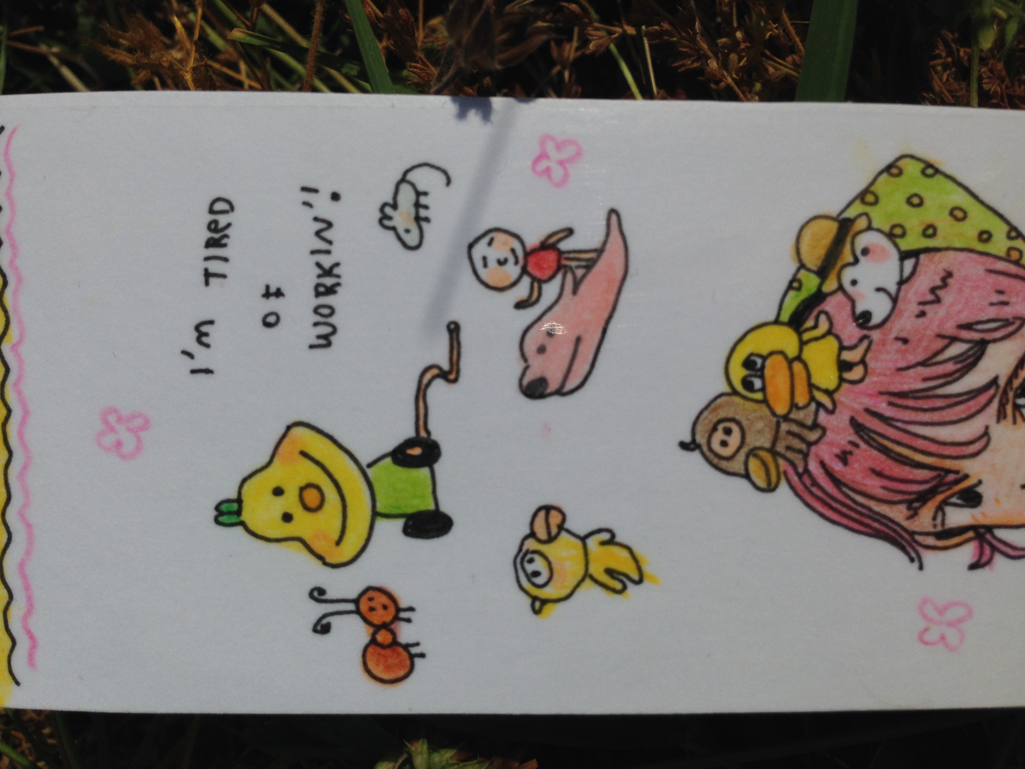 Bookmark drawn on bristol paper and then laminated with packaging tapes