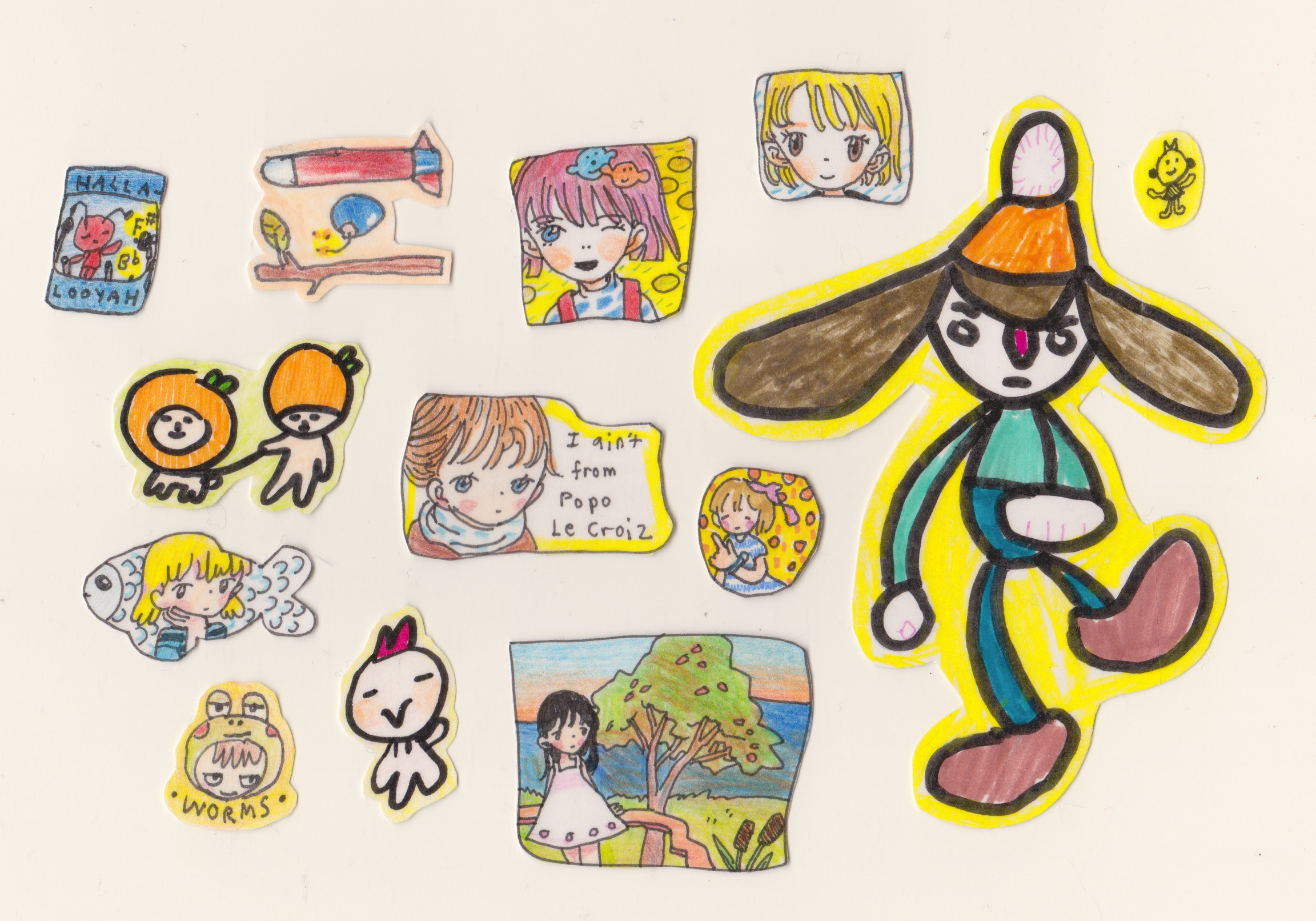 All hand drawn on sticker paper and then laminated with packaging tapes