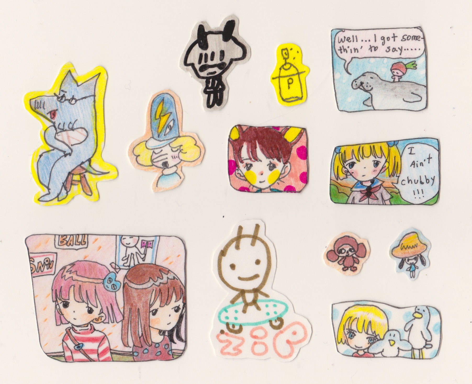 All hand drawn on sticker paper and then laminated with packaging tapes