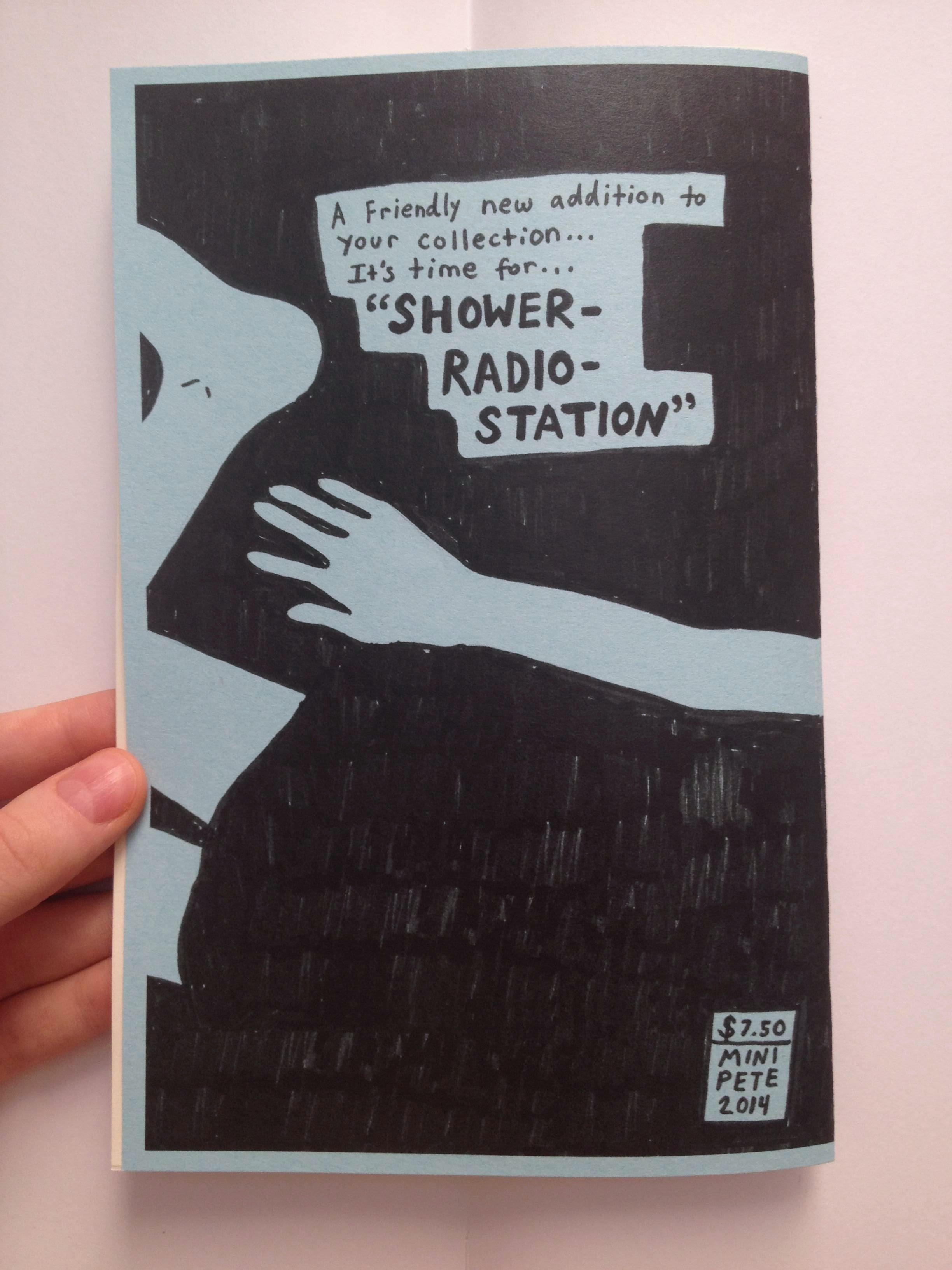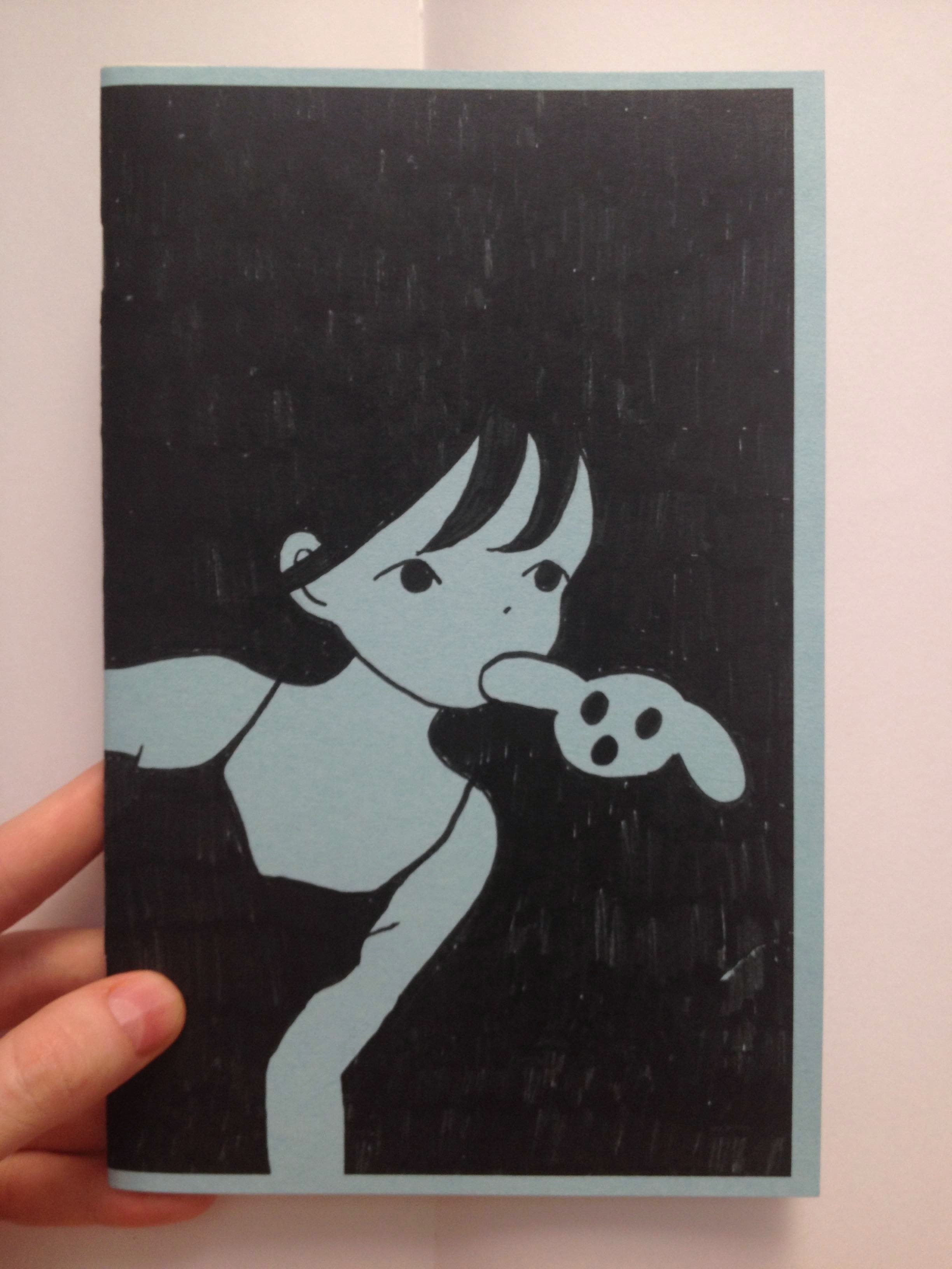 12 page zine Printed black and white on cream paper Thick blue cover Includes small drawing and Minipete's autograph