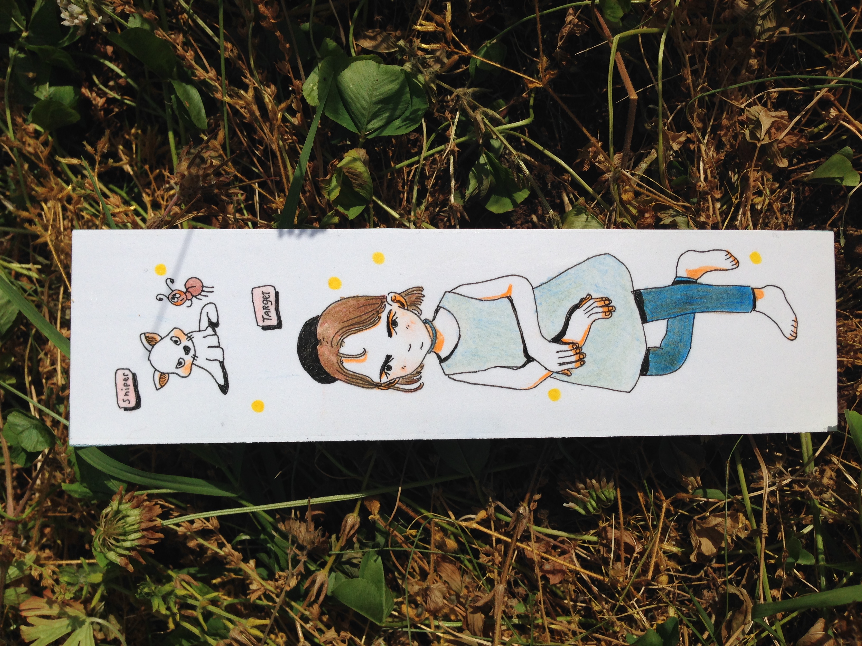 Bookmark drawn on bristol paper and then laminated with packaging tapes