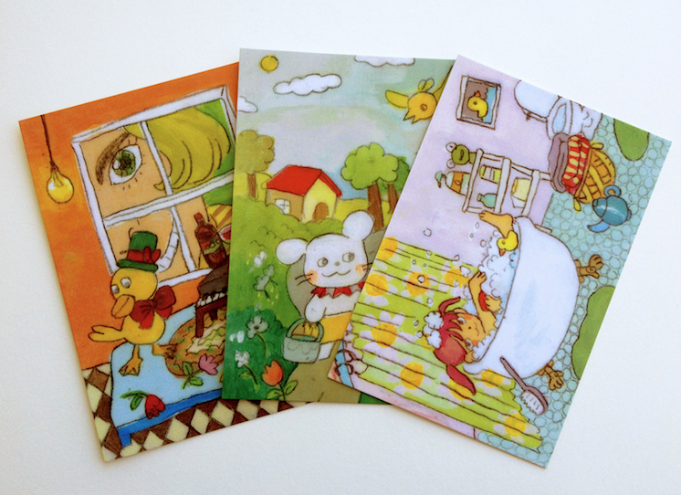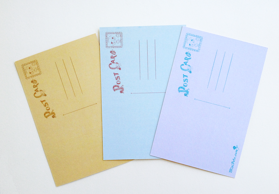 3 different postcards 4 by 6 inches 14 pt cover stock Glossy on front & rough n' good for writing on back