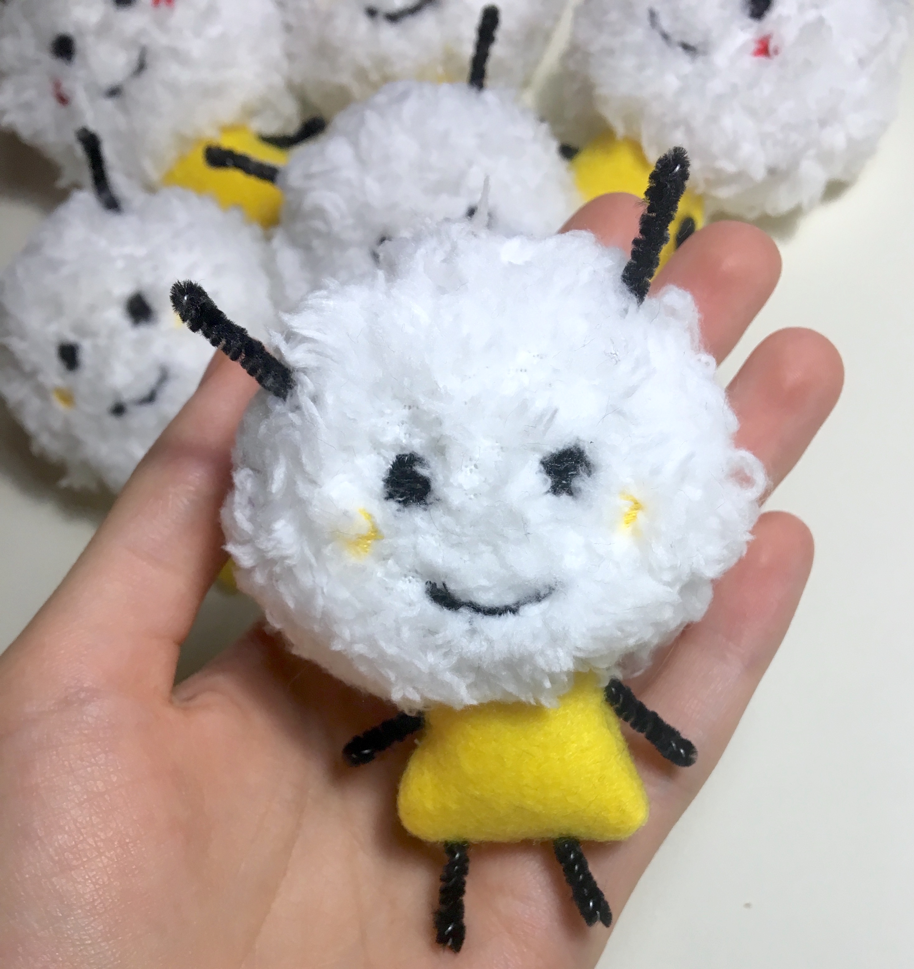 Handmade from fuzzy fabric, felt, and pipe cleaners Stitched on features Toy of popular character, Froach the Roach