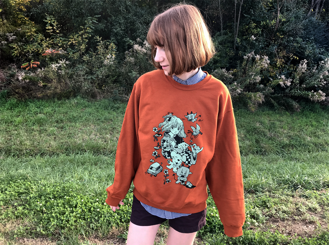 Mint/black waterbased ink on a Jerzees Nublend texas orange sweatshirt