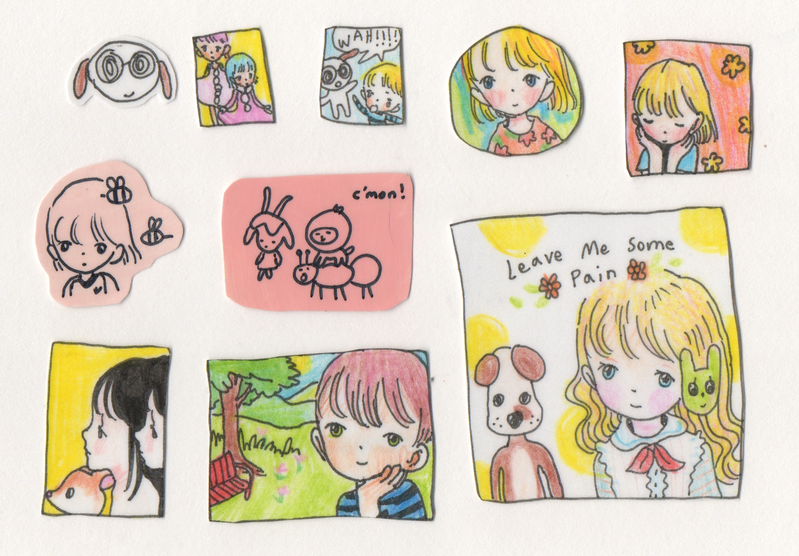 All hand drawn on sticker paper and then laminated with packaging tapes