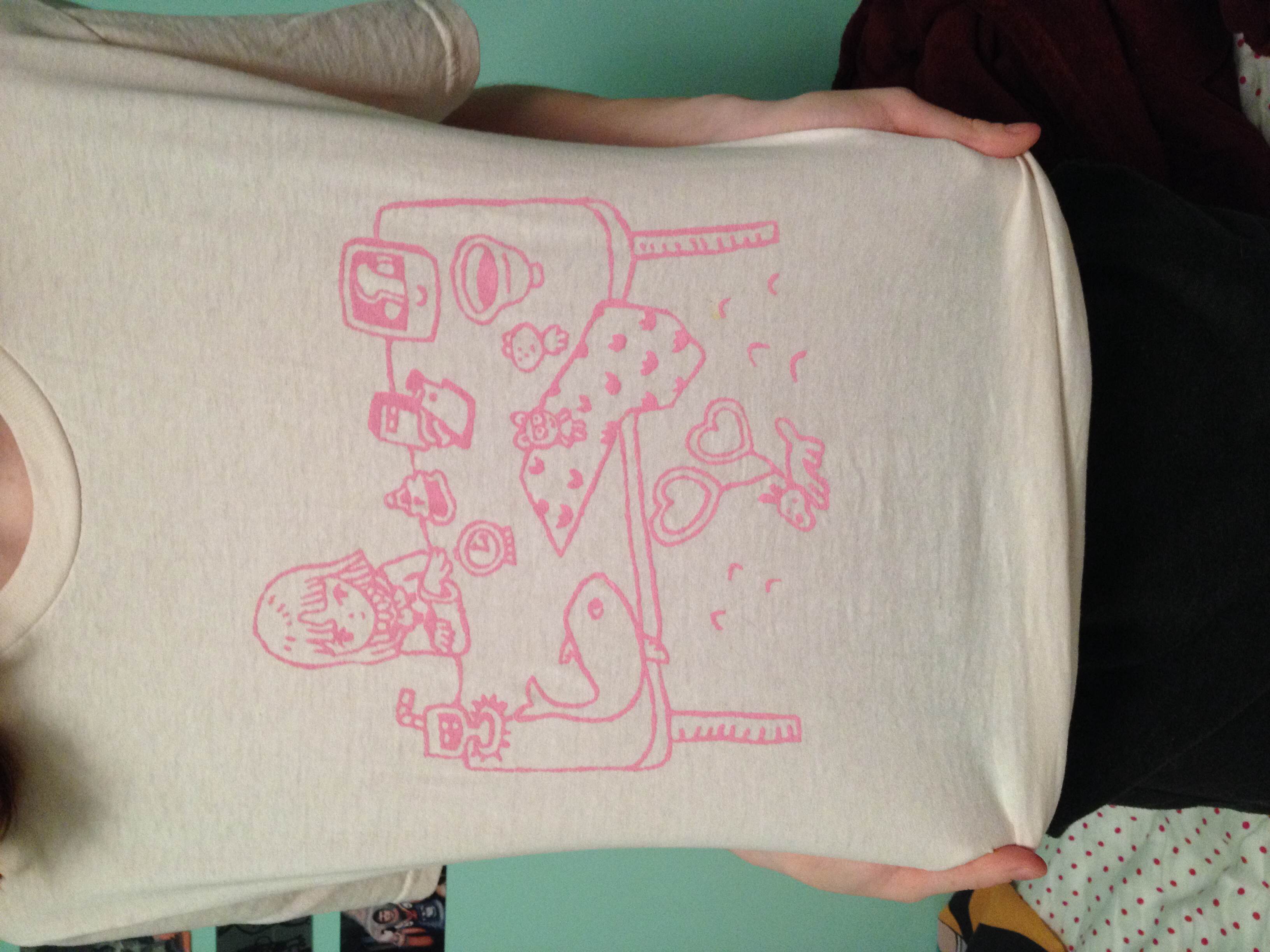 The screen for this design was destroyed accidentally during the printing process, therefore there are only 3 remaining shirts of this kind.....Never again to be sold.....