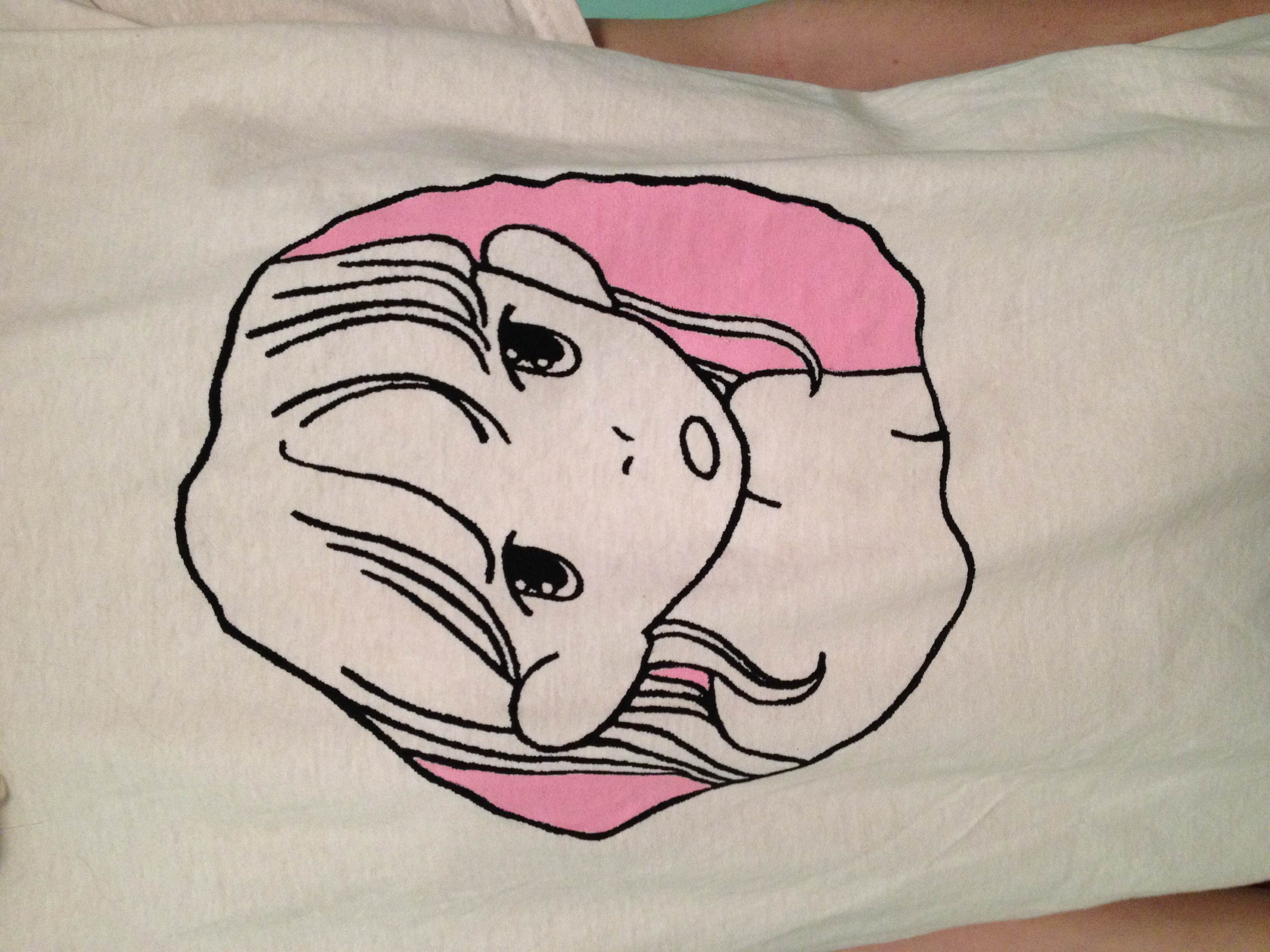 Light peach hand-dyed, screen-printed, and hand-painted shirt Size MEDIUM Tshirt brand is Fruit of the Loom