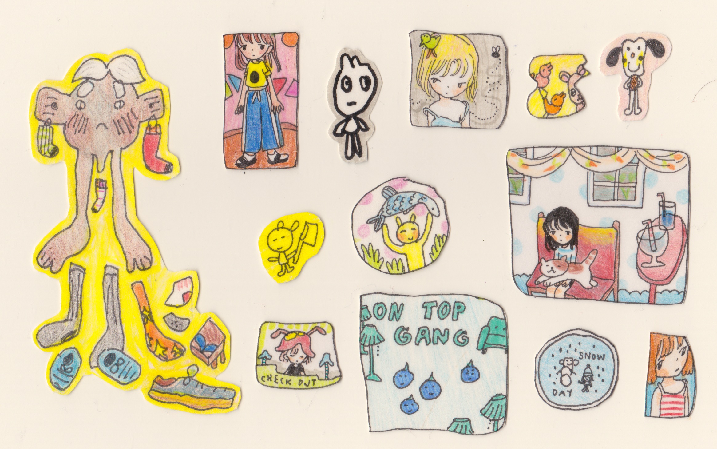 All hand drawn on sticker paper and then laminated with packaging tapes Featuring sticks by the one and only OLIAS