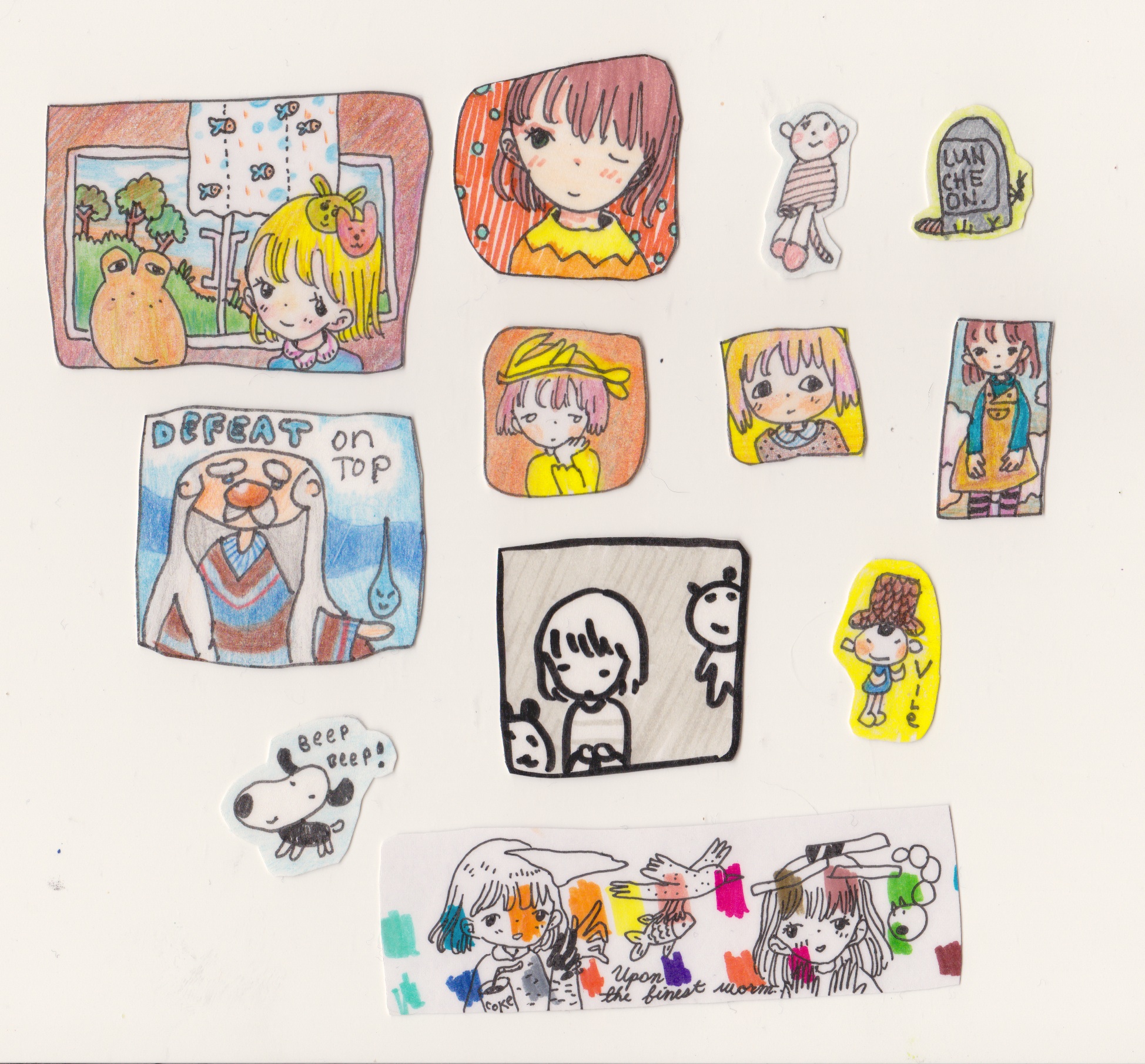 All hand drawn on sticker paper and then laminated with packaging tapes Featuring sticks by the one and only OLIAS
