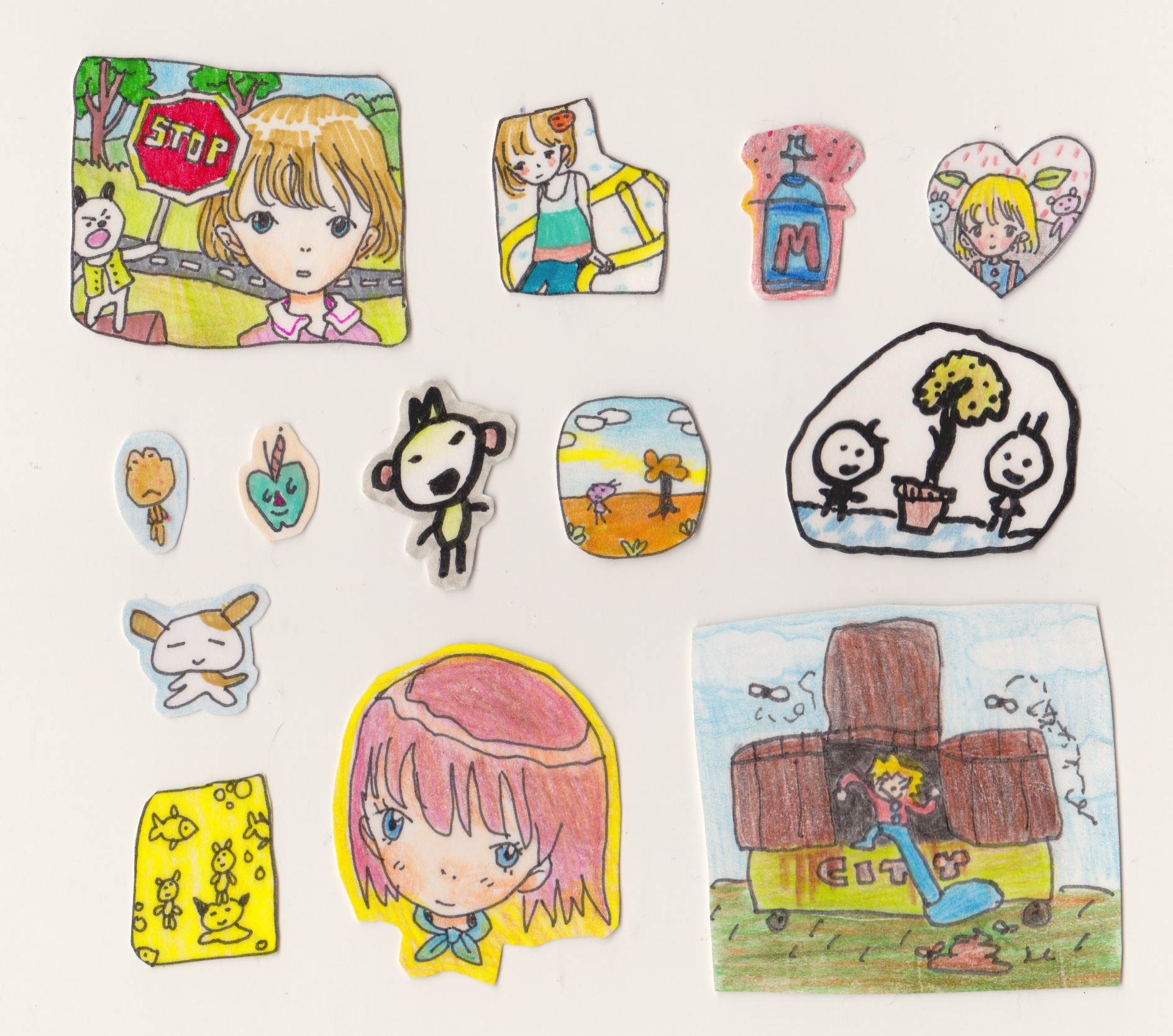 All hand drawn on sticker paper and then laminated with packaging tapes Featuring sticks by the one and only OLIAS